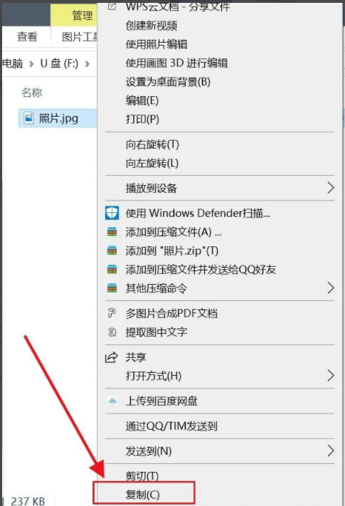 4、選擇要導(dǎo)入手機(jī)的【照片】右鍵【復(fù)制】。