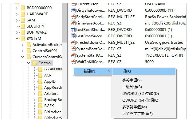 3、若沒有,則鼠標(biāo)右鍵點擊“Control”,依次點擊“新建”-“項”。