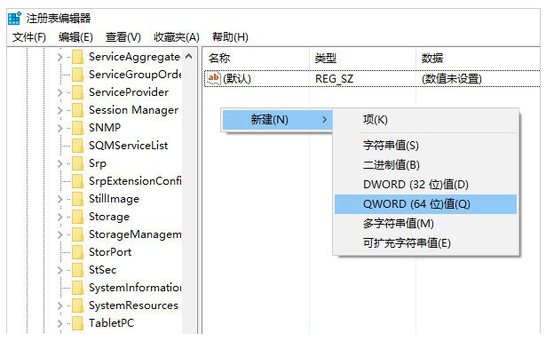 5、 接下來點擊StorageDevicePolicies,在右側(cè)空白處右鍵選擇新建QWORD(64位)值。