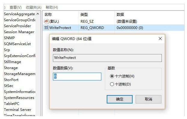 6、然后雙擊WriteProtect,將數(shù)據(jù)設(shè)置為0,最后點擊確定即可去除u盤寫保護。