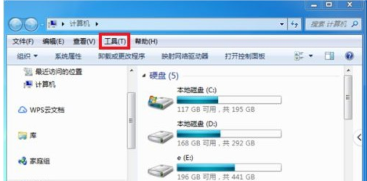 1、 電腦無(wú)法讀取U盤可能是文件夾被隱藏了,打開此電腦,點(diǎn)擊工具。