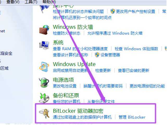 3、再點擊里面的“BitLocker驅(qū)動器加密”選項。