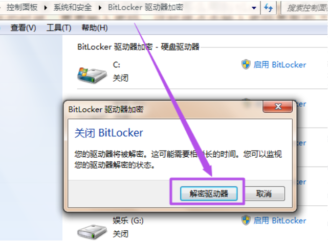 5、在彈出的窗口中點擊‘解密驅(qū)動器’,等待解除即可。