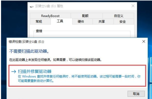 2、打開屬性對話框,點(diǎn)擊“工具”選項(xiàng)卡,點(diǎn)擊“開始檢查”進(jìn)行查錯處理操作即可。