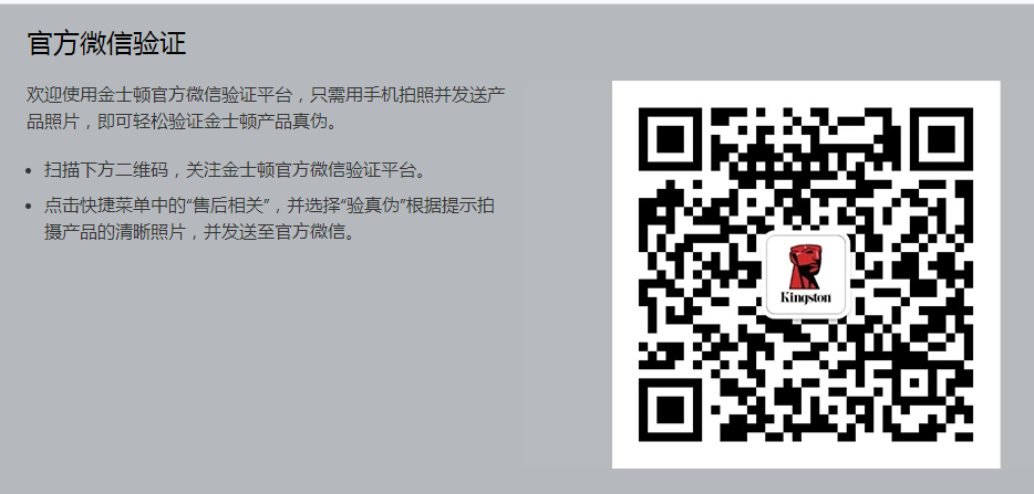 3、然后在打開的網(wǎng)頁(yè)中在金士頓的官方微信二維碼,用手機(jī)微信掃描并關(guān)注金士頓官方微信;
