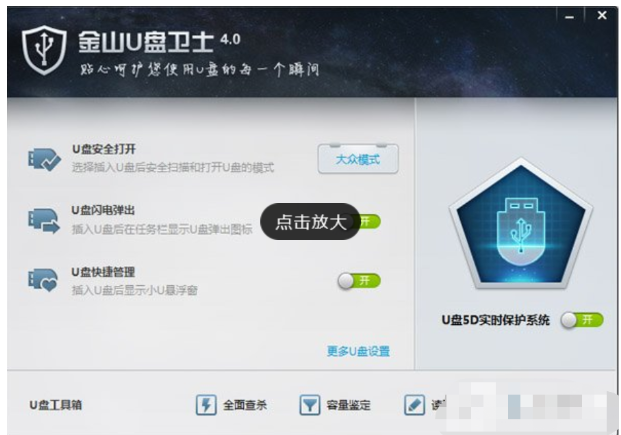 金山U盤衛(wèi)士是一款鑒定U盤真?zhèn)魏蜏y試U盤速度的小工具,提取于金山衛(wèi)士4.7最新版本,純綠色版,即下即用,能夠幫助小伙伴一鍵精準(zhǔn)測試出U盤的真?zhèn)我约癠盤的讀寫速度,讓用戶能夠掌握自己的U盤性能優(yōu)劣,判斷出U盤的好壞。