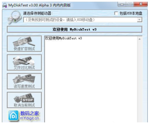 MyDiskTest是一款U盤/SD卡/CF卡等移動(dòng)存儲(chǔ)產(chǎn)品擴(kuò)容識(shí)別工具,可以方便的檢測出存儲(chǔ)產(chǎn)品是否經(jīng)過擴(kuò)充容量,以次充好,還可以檢測FLASH閃存是否有壞塊,是否采用黑片,不破壞磁盤原有數(shù)據(jù),并可以測試U盤的讀取與寫入速度。