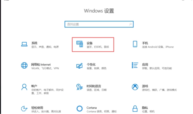 2、在電腦的設(shè)定窗口中找到設(shè)備,點(diǎn)一下進(jìn)入設(shè)備頁(yè)面。
