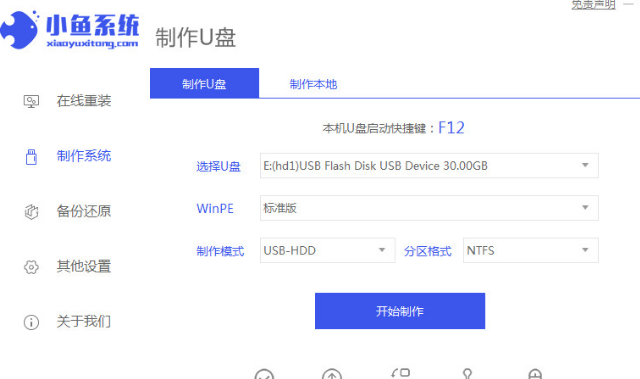 2、隨后將我們的U盤插入計(jì)算機(jī)中,這個(gè)時(shí)候要單擊開始制作。
