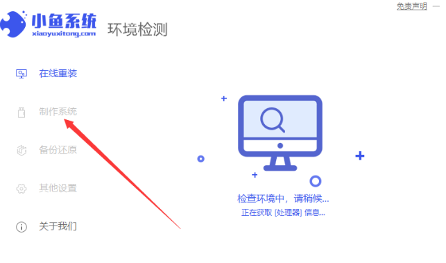 1、首先關(guān)掉計(jì)算機(jī)上運(yùn)行的殺毒軟件,隨后打開小魚一鍵重裝系統(tǒng),隨后選擇制作系統(tǒng)里面的[U盤模式]。