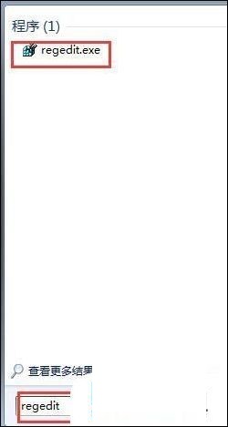 2、在開始菜單中搜索“regedit”并雙擊該程序打開注冊表,如圖: