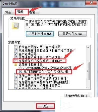 1、將u盤插入電腦中,打開“我的電腦”,右擊u盤盤符選擇“打開”,(注意一定不要直接雙擊打開,否則會激活病毒)。然后點(diǎn)擊“工具--文件夾選項--查看--顯示所有文件和文件夾”,把“隱藏受保護(hù)的系統(tǒng)文件”的勾去掉,如圖: