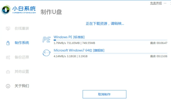 4、開始自動下載系統(tǒng)和備份的資料導入到U盤里面。