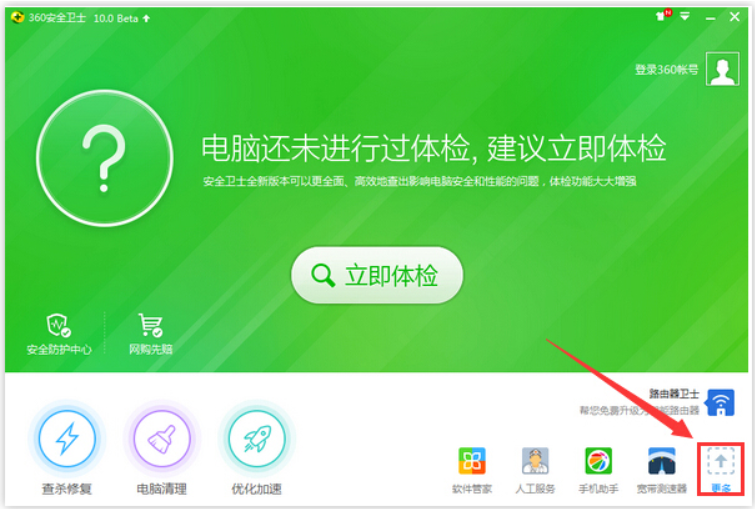 1、首先進(jìn)到360安全護(hù)衛(wèi)主頁面,點(diǎn)擊下圖右下方。
