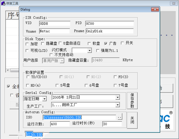 1、插入U盤到電腦,軟件自動讀取,點擊設(shè)置進(jìn)入?yún)?shù)設(shè)置界面自定義參數(shù);