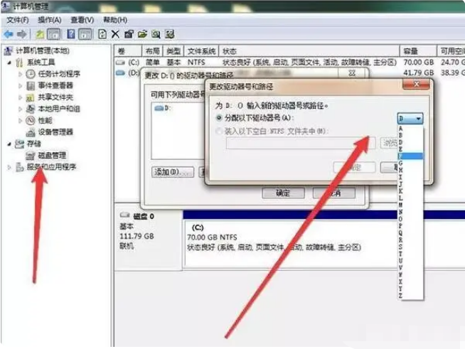 如果我們的U盤顯示在磁盤內(nèi)無法識別的話,鼠標點擊【計算機管理】中的【磁盤管理】,在右側(cè)找到自己的U盤,鼠標右鍵選擇【更改驅(qū)動器號和路徑】,彈出彈框之后,接著選擇【更改】,鼠標點擊右邊的【下拉框】選擇一個未被占用的盤符,點擊確定之后,電腦就會重新識別并安裝相關(guān)驅(qū)動,最后我們就去看看有沒有識別成功。