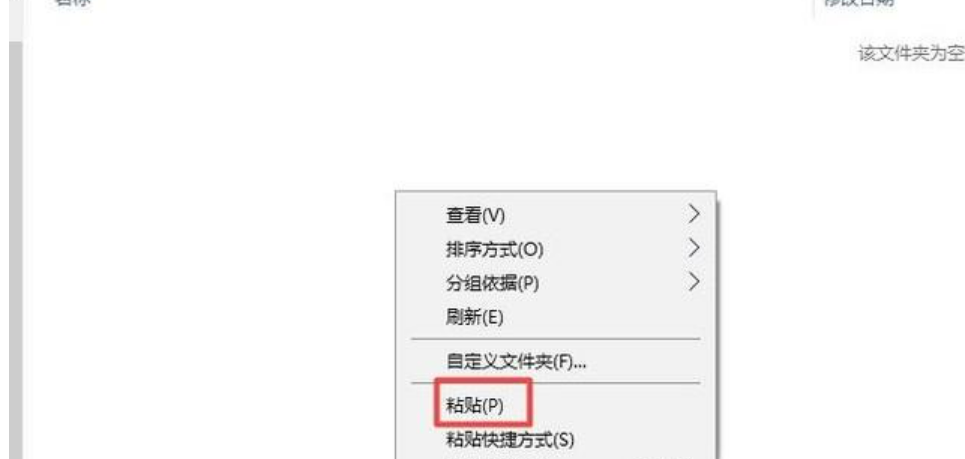 3、回到之前打開的U盤處,然后右擊選擇粘貼;