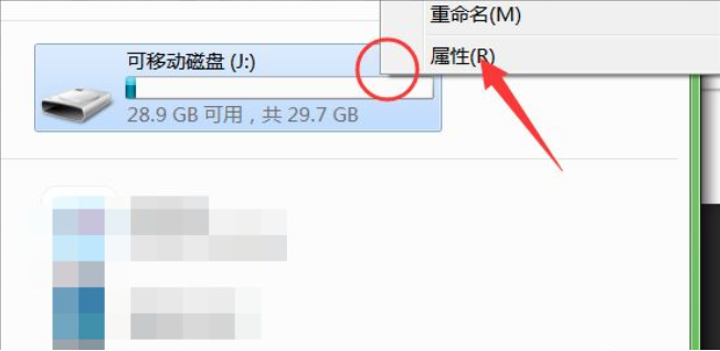 2、接著,在該界面,盤(pán)符上右擊,即可彈出相關(guān)菜單,最底部為屬性項(xiàng),點(diǎn)擊查看該磁盤(pán)的屬性。