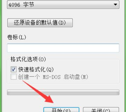 6、最后,點(diǎn)擊最下方的開(kāi)始按鈕,即可立即開(kāi)始,這樣就不可以終止,格式更改完成后,U盤(pán)內(nèi)容會(huì)清空。這樣就可以拷貝大文件了。