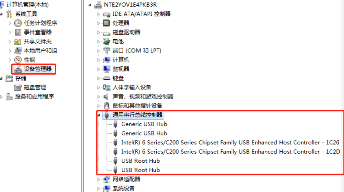 2、之后點擊展開“通用串行總線控制器”,此時我們可以看到電腦系統(tǒng)所有USB接口。