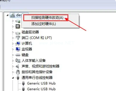 5、卸載完成后,鼠標右擊選擇計算機名,選擇“掃描檢測硬件改動”即可。
