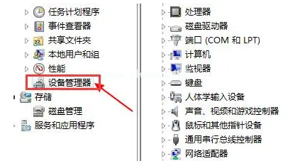 2、在左邊菜單里面,點擊“設(shè)備管理器”。