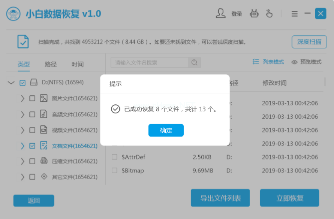 3、掃描好后就能夠看到掃描出來U盤中的文件,找到并勾選好要恢復(fù)的文件,點擊右下角的“立即恢復(fù)”即可。