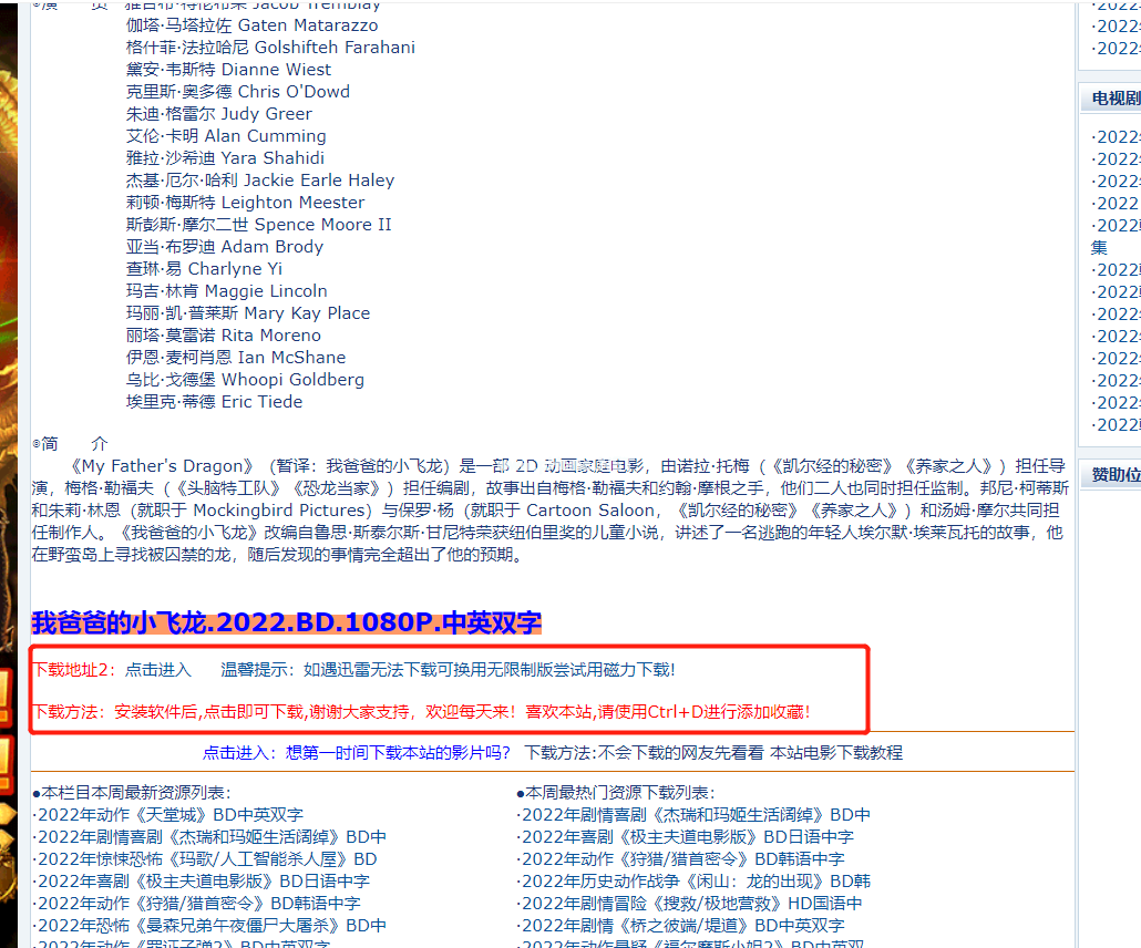 3、選擇需要下載的電影,進(jìn)入電影介紹頁(yè)面,往下滑,找到下載地址和下載方式。