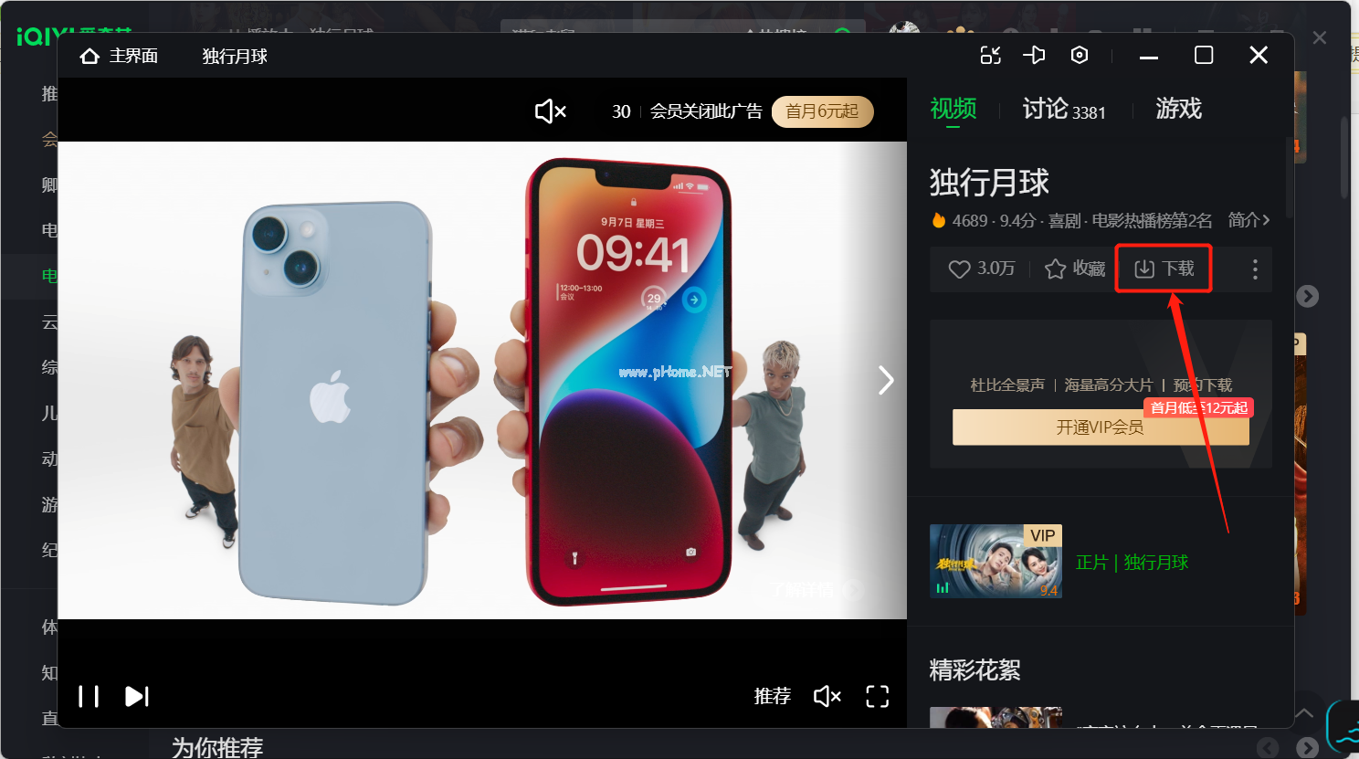 2、打開(kāi)愛(ài)奇藝軟件,選擇一個(gè)喜歡的電影,然后點(diǎn)擊下載。