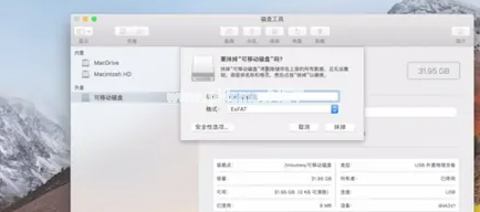 3.輸入名稱和格式,再點擊抹掉完成后你就可以正常將文件放到這個u盤里面了。