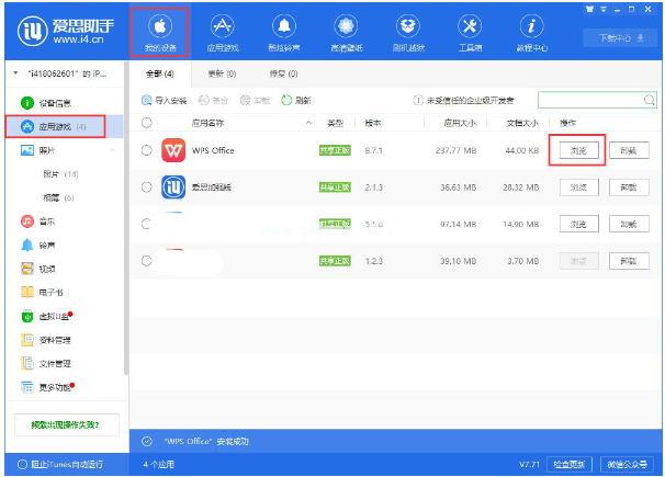 3、若是需要在手機(jī)上打開并查看Word或者Excel文檔,需要先下載可以打開文檔的應(yīng)用軟件(例如WpsOffice),使用愛思助手導(dǎo)入文檔到應(yīng)用文件夾即可。