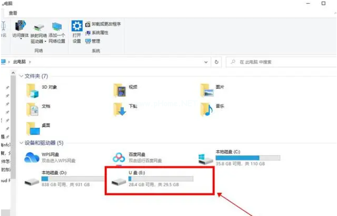 2、然后找到U盤的盤符,雙擊這個(gè)盤符打開U盤。