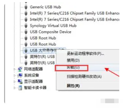4.然后單擊右鍵選擇“卸載”;