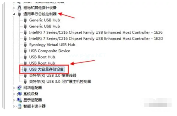 3.在設(shè)備列表中展開,點(diǎn)擊選擇“USB大容量存儲(chǔ)設(shè)備”;