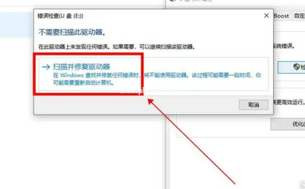 3:在錯誤檢查窗口中,點擊“掃描并修復驅(qū)動器”,系統(tǒng)會自動修復文件系統(tǒng)錯誤和掃描并嘗試恢復壞扇區(qū)。