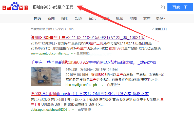 2、知道了你的U盤型號之后即可在網(wǎng)上根據(jù)你的U盤芯片型號下載對應(yīng)的U盤量產(chǎn)工具了,根據(jù)U盤芯片型號搜索工具下載即可。