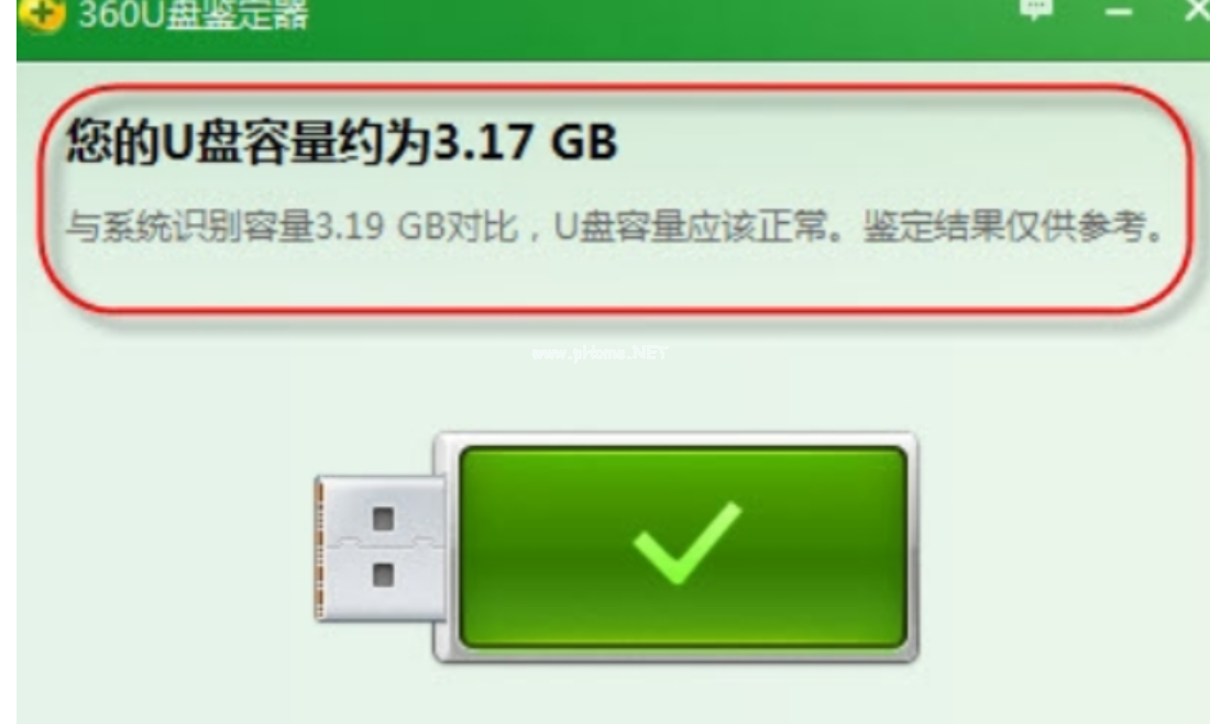4、鑒定完畢,顯示出U盤的容量。
