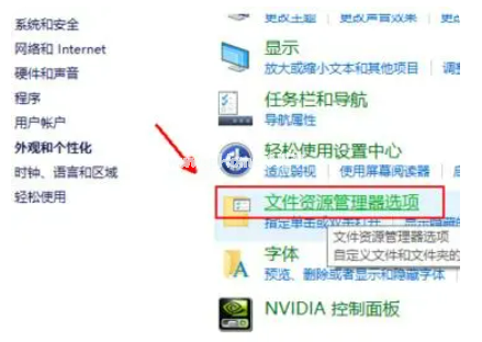 2、然后在電腦控制面板中,點(diǎn)擊選擇“文件資源管理器選項(xiàng)”;