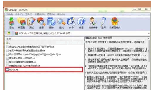 1、下載的U盤超級加密3000的壓縮包打開,把里面的ude.exe文件放到需要加密的U盤里。