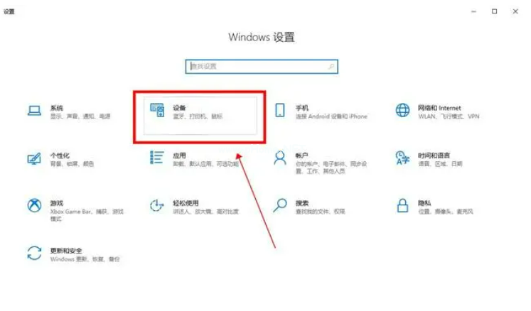 2、在Windows設置窗口中,找到并點擊“設備”。