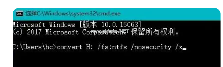 在平時(shí)狀態(tài)下U盤盤符格式都是FAT32的,我們可以先把他轉(zhuǎn)換成NTFS格式,在電腦打開命令提示符界面,然后輸入convert H: /fs:ntfs