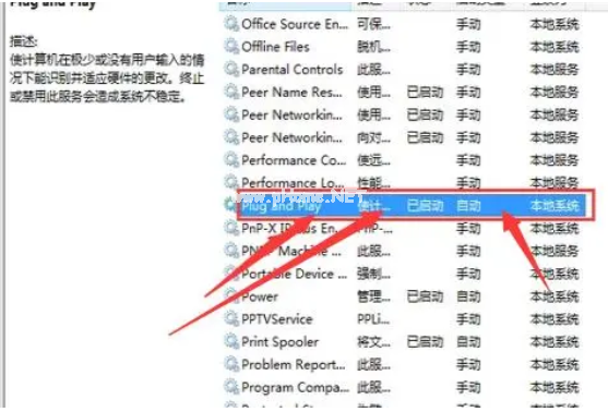 4、找到Plug and Play,看看這個(gè)是否開(kāi)啟,關(guān)閉的話(huà)點(diǎn)擊開(kāi)啟即可。