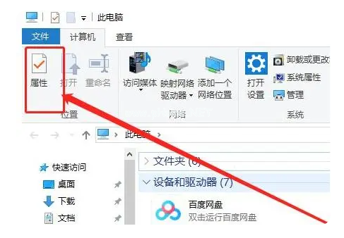 1、先將U盤(pán)插入計(jì)算機(jī),打開(kāi)電腦中的“此電腦”,點(diǎn)擊其中的“屬性”;