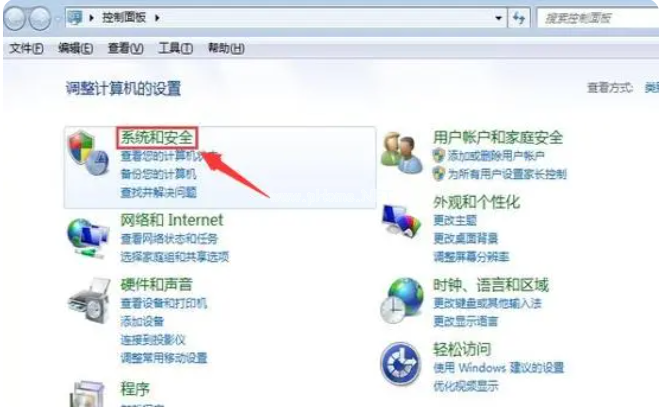1、需要我們先打開(kāi)電腦控制面板,點(diǎn)擊進(jìn)入“系統(tǒng)和安全”;