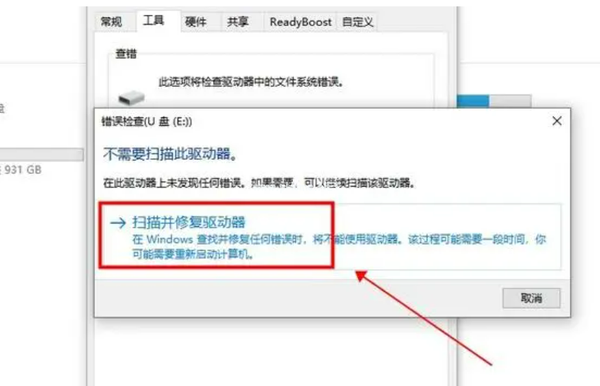 3、在彈出的窗口中,點擊“掃描并恢復驅動器”進行掃描修復即可。