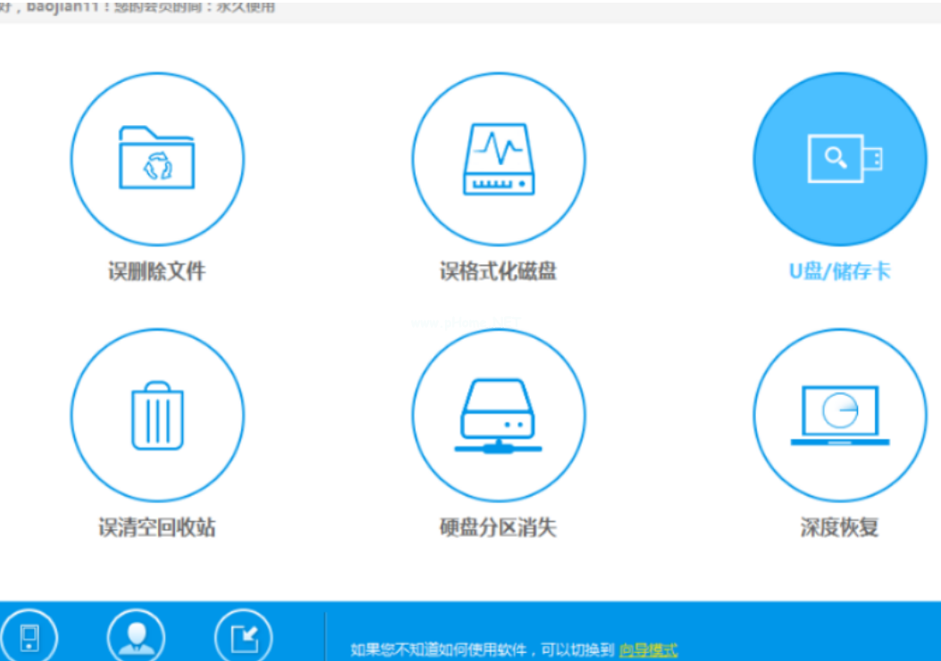 1、u盤數(shù)據(jù)恢復(fù)大師怎么用,首先要將u盤插入電腦USB接口處,打開下載好的u盤數(shù)據(jù)恢復(fù)大師軟件,點(diǎn)擊“u盤/存儲(chǔ)卡”。