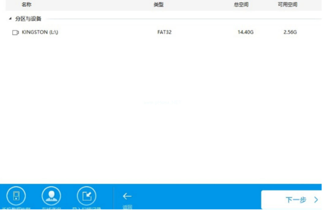 2、選擇頁(yè)面的u盤,點(diǎn)擊“下一步”。