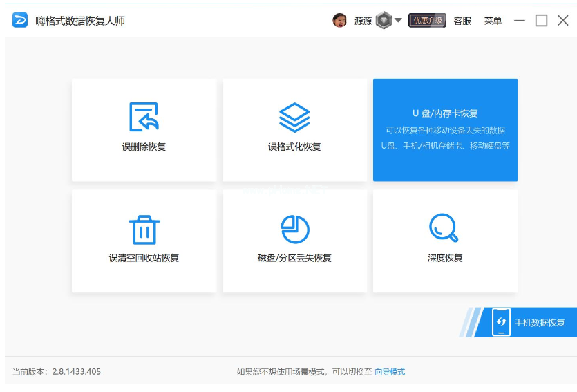 1、運(yùn)行嗨格式數(shù)據(jù)恢復(fù)大師,點(diǎn)擊“U盤/內(nèi)存卡恢復(fù) ”功能。