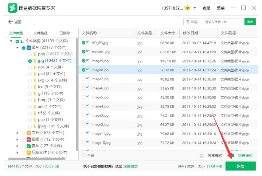 4、這樣就可以恢復(fù)需要的數(shù)據(jù)文件。