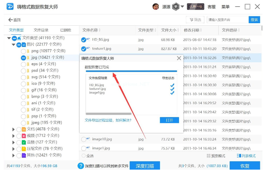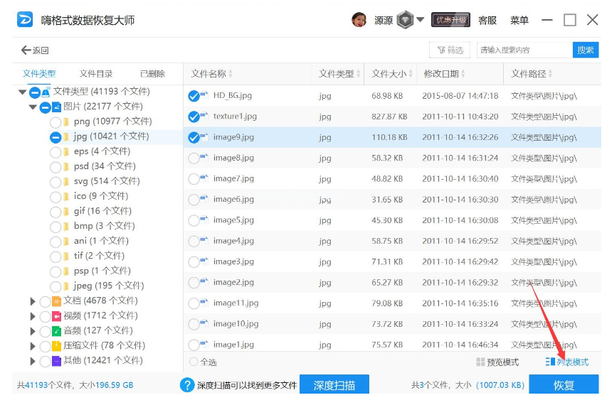 3、數(shù)據(jù)掃描完成后,找到要恢復(fù)的文件,點(diǎn)擊“恢復(fù)”。